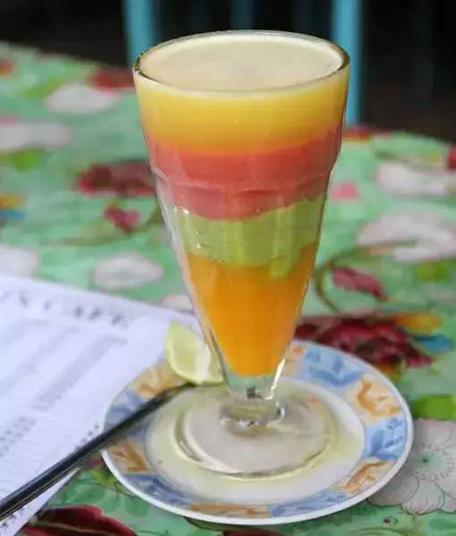 埃塞俄比亚多层果汁饮料,当地称为“Spreece或者spris”。埃塞俄比亚人民可以做出各种各样美丽的果汁层,常见的有芒果,牛油果,番石榴,木瓜等,可以根据喜好再挤一点柠檬。这一大杯好喝的果汁,只要人民币 5块钱左右,而且绝对纯天然!