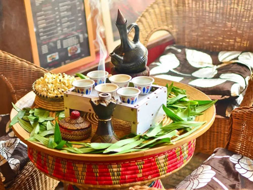如果你是一个咖啡重度爱好者,埃塞一定是你要朝圣的土地。作为咖啡的起源国,埃塞俄比亚让你见识到咖啡的地道与纯正。在首都亚的斯亚贝巴,分布着大大小小的咖啡馆。花上几块钱就能喝上一杯地道的埃塞咖啡。咖啡馆更多的是作为社交场所。如果说塞纳河左岸的咖啡馆充满了文艺气息,埃塞的街头咖啡馆则平民气十足。为了更经济实惠,很多咖啡馆甚至“一体两用”。一旦夜幕降临,白天的咖啡馆立马变成了酒吧。