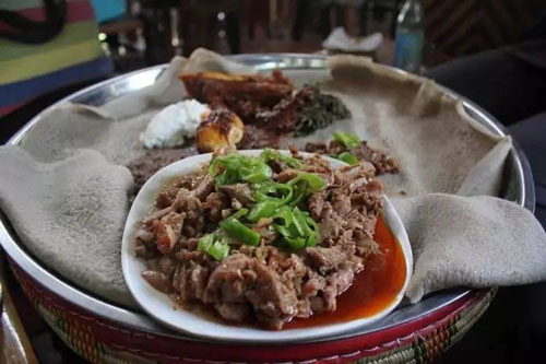 作为埃塞的主食,它已经有3000年的历史。顺便说一下,吃英吉拉的时候,不用筷子不用刀叉,只能手抓。非洲人就是如此豪放的!