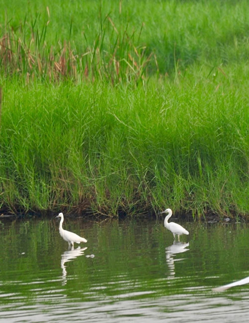 乘坐船只,进入湖区,只见波光粼粼,甚是美丽。