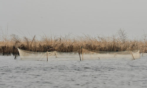 坐在小木船上,进入湖区深处,会看到两旁有一片片用树枝和椰条、渔网围起来的“渔场”,那是村民们的重要财产。除了在湖里直接撒网捕鱼,“渔场”每半年可以收获一次。