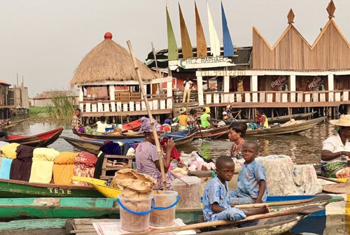 贝宁有30多个水上村庄,冈维埃是最大的一个,东西长约5.5公里,南北宽约4.25公里,大约有2.7万多的 Tofinu族人住在这里。村里商店、学校、教堂、公墓等等一应俱全,整个村庄的人,所有的生活就在这片水域里。