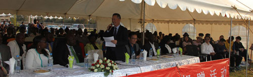 COUNSELOR OUYANG ATTENDED THE CEREMONY OF CHINESE CO. DONATING BASKETBALL COURT TO KAUNDA SQUARE MIDDLE SCHOOL