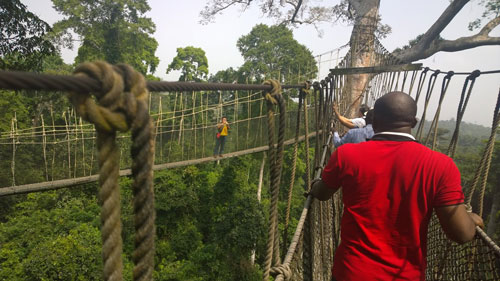 这个地方,在到达Cape Coast后,往北走没多远。是一片苍天大树,树之间用吊桥相连。不过这个景点的好处是空气清新。胆大的人可以试试。