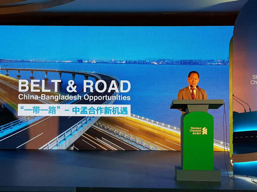 On April 22, Counselor Li attended the “Belt and Road” China-Bangladesh Opportunities Forum and delivered a speech.