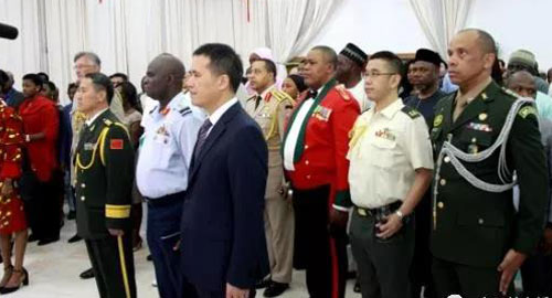 7月31日,中国驻尼日利亚武官刘永选大校在使馆举行招待会,热烈庆祝中国人民解放军建军91周年。周平剑大使和尼政府、军方高官,以及驻尼使团和武官团、在尼中资机构代表近300人参加招待会。