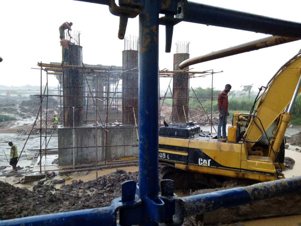 Project team overcome rainy weather and make full use of time to work, construction of pier base for Lagos GIWA Bridge Project will be completed next week.
