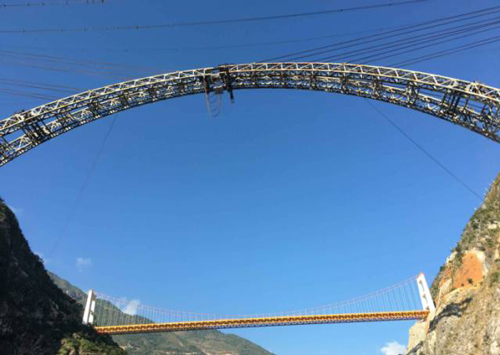 A steel-tube arch bridge in Yunnan province was successfully closed on Nov 15, 2016. The bridge, which sits 270 meters above the Lancang River, is part of the Dali–Ruili Railway in Southwest China's Yunnan Province. The main body of the bridge has a span of 342 meters, and the entire length of its bridge floor is 528.1 meters, making it one of the longest arch bridges China has ever built. And it is also the world's first bridge which was constructed using the "secondary vertical turn" construction method.