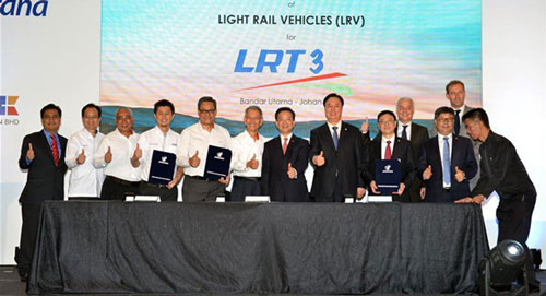 The agreement will see the consortium to be responsible for the design, manufacture, supply, delivery, installation, testing and commissioning of 42 six-car LRVs for the LRT3 project.