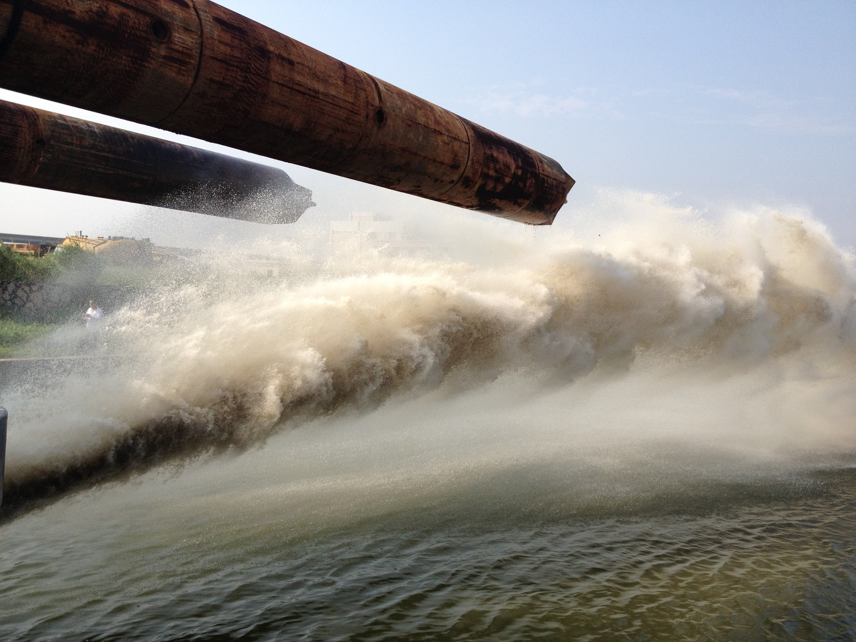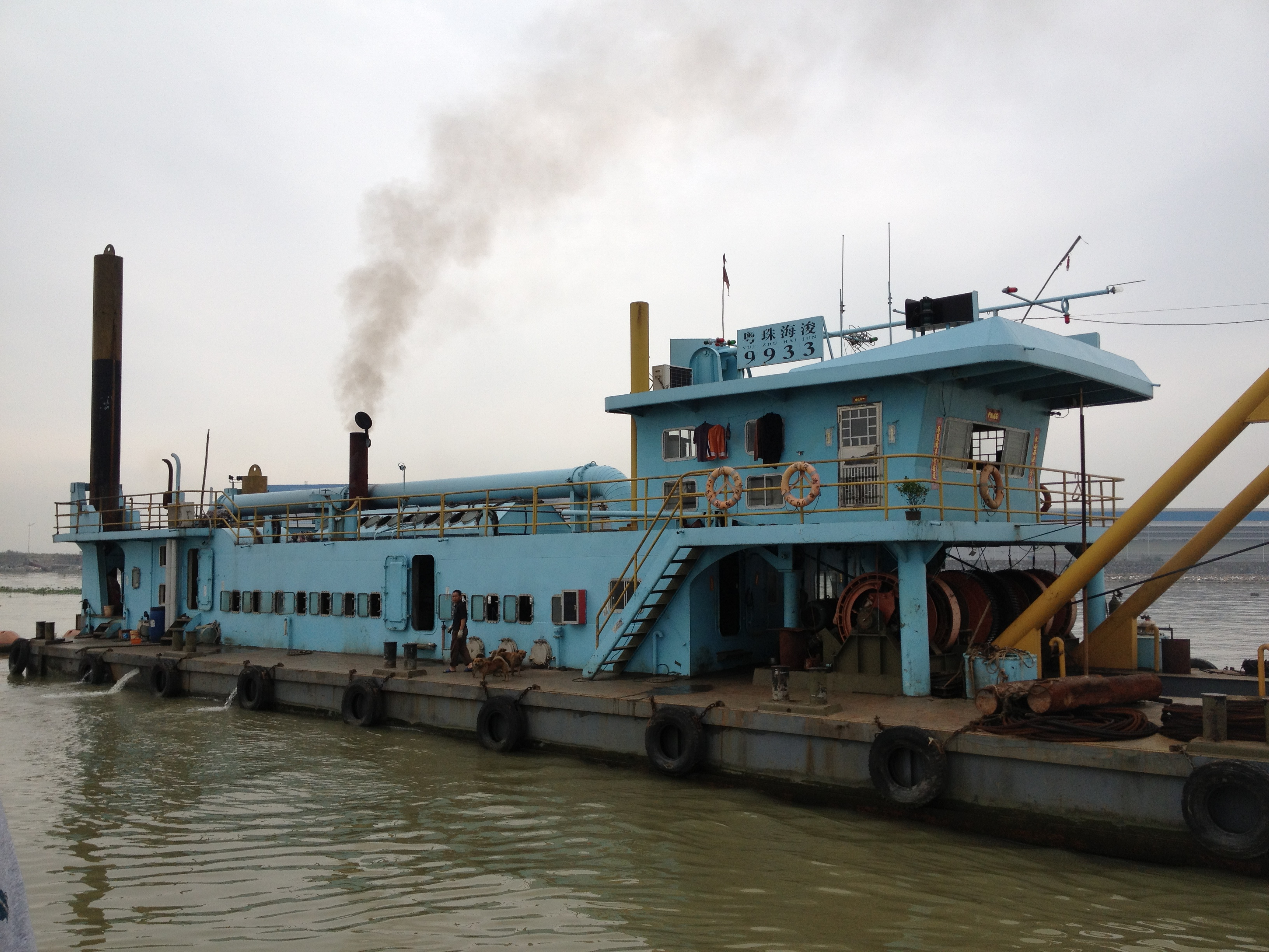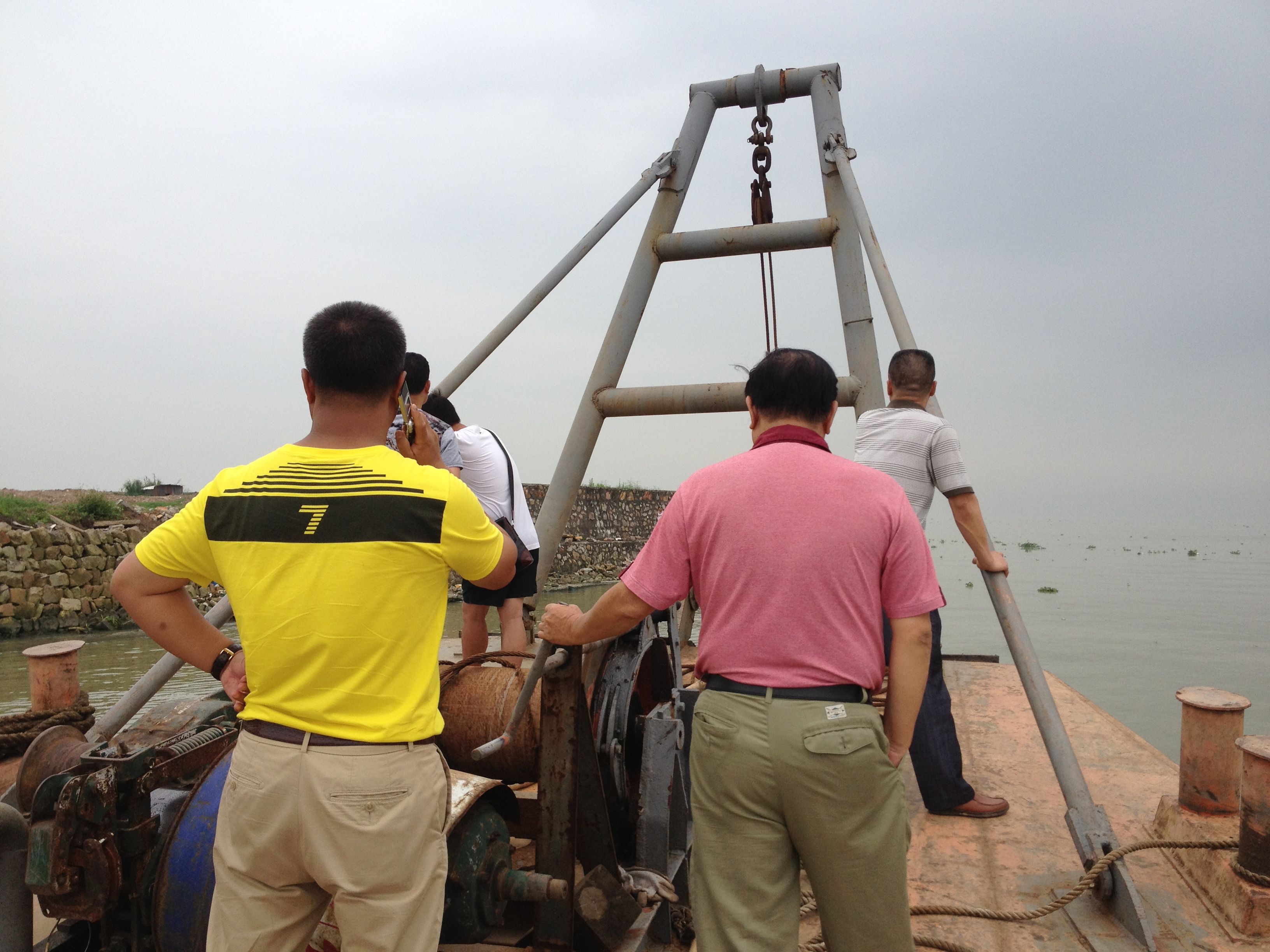 One of cutter suction dredgers trials run A small barge carry Mr. Peter, Jackson & Mr. Yuan,