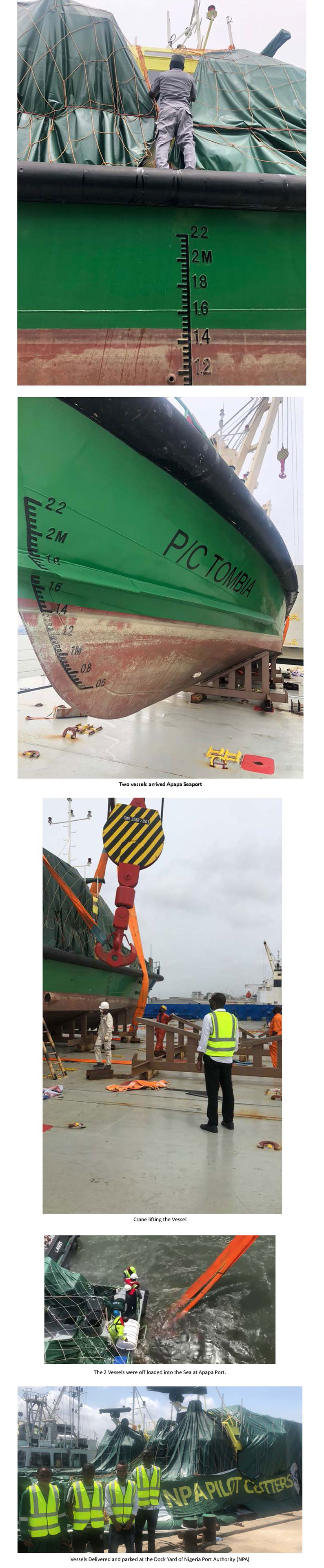 Two Pilot cutters manufactured by MCC were loaded in Zhuhai port and successfully delivered in Lagos Nigeria and parked in NPA Jetty for official handing over.