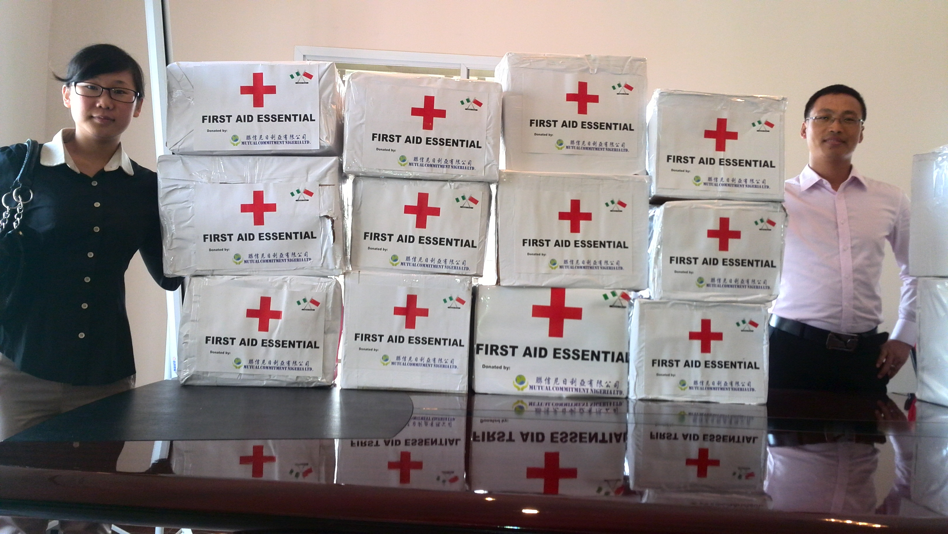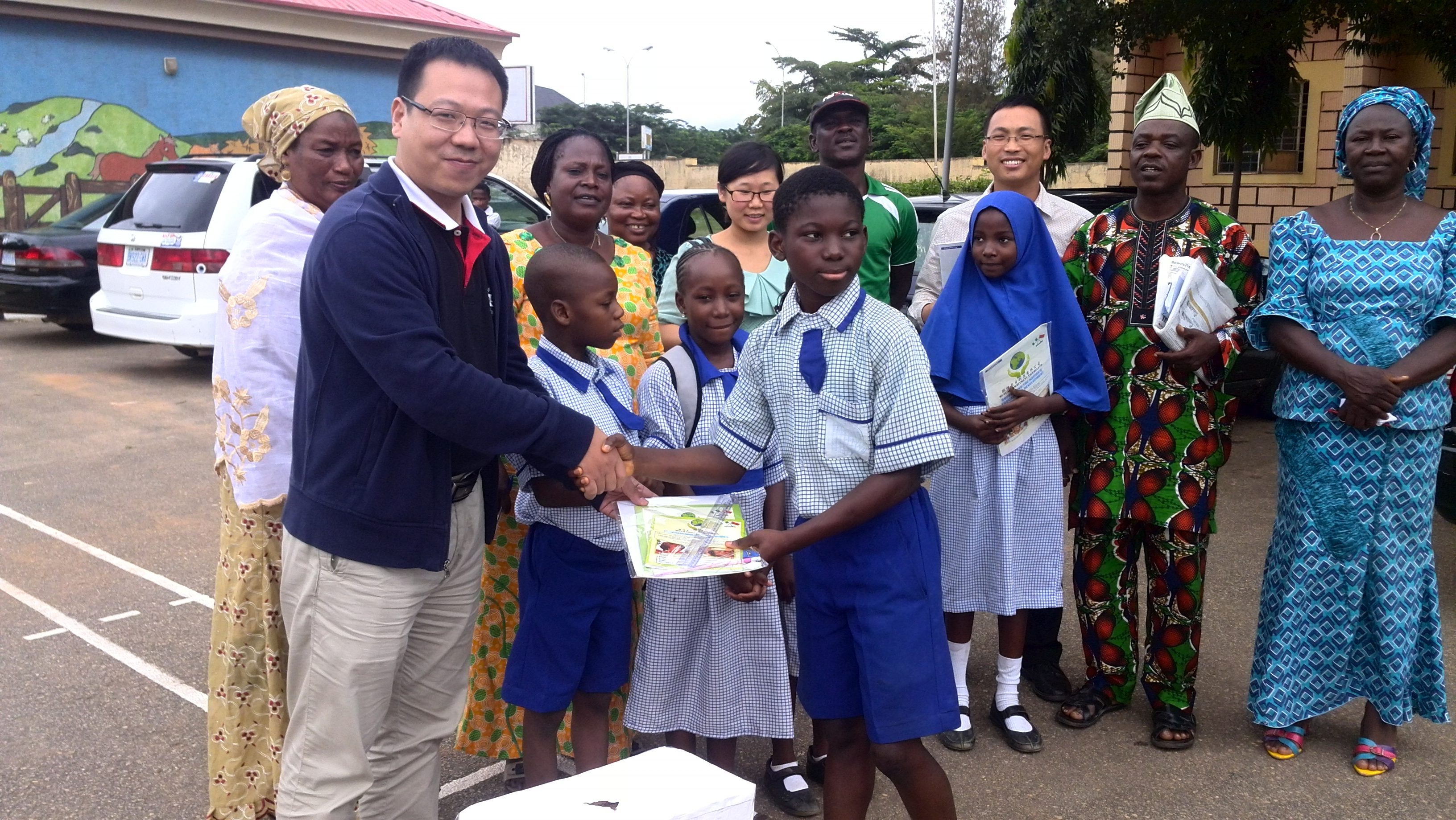 Miss zhang donated emergency packs and materials to LEA Nyanya school