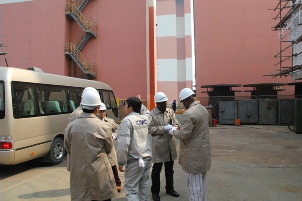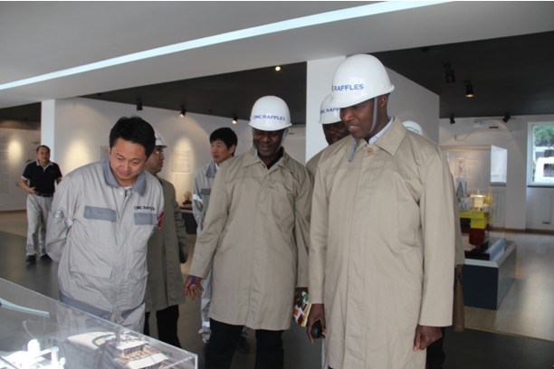 On 29th SEP 2013, NPA officers, GM Procurement Asanga and Engineer Olukotun accompanied by Vice president DAVID GUO , Assistant president JACKSON YANG and Counselor Dr. OMENE paid a visit to our shipyard-CIMC RAFFIES. Among the business investigation, the exploratory mission visited the ship museum, inspected the shipyard, including assemble shop & outfitting shop & deep water wharf & erection berth, and the yacht factory. Then the exploratory mission climbed up the world ’s biggest crane named TAISUN and overlooked the whole shipyard. At last the team looked around the Research Institute of CIMC RAFFIES.