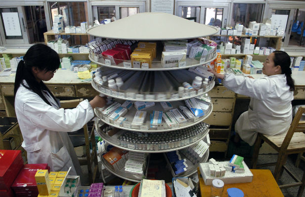 Pharmacists fill out prescriptions in China's Jiangsu province.