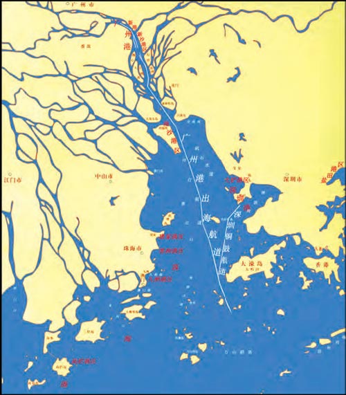 The navigational channel of Guangzhou Port has a total length of 115km and water depth within -8.6m dredging depth -13.5m. The Lingding navigational channel has been dredged to be -15.5m in depth and the dredging work quantity exceeds 120,000,000m3.