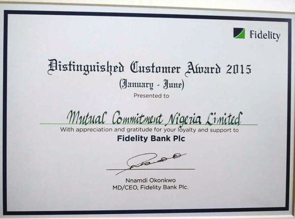 Group Company was awarded the Distinguished Customer of 2015 by Fidelity Bank Plc.