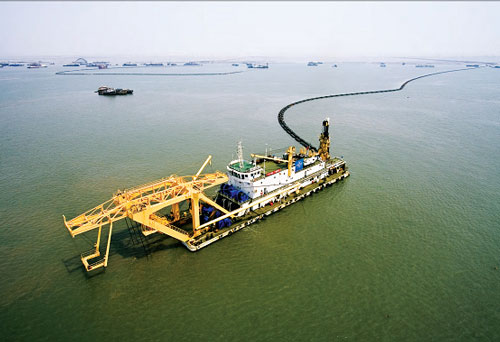 The average water depth is 4.6m. This project is composed of three phases. The reclamation area will be 105km2 in 2010, 150 km2 in 2020 and 310km2 in 2030. This is the largest single coast reclamation project for land formation in the world.