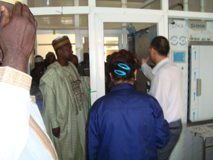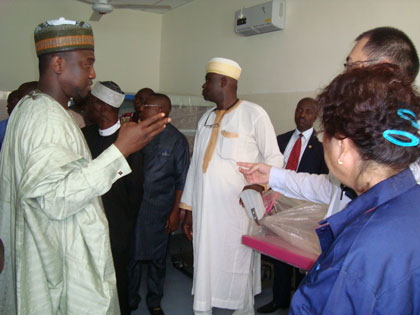 At around 12:30 of Oct. 26th 2015, Niger State Governor, His Excellence, Mr.Abubakar Sani Bello, together with several key government officials, came to our Minna Hospital construction site to inspect our construction progress, and visited our professional medical facilities in the wards of the hospital accompanied by our Site Manager Mr. An Fenghai and Medical Expert Mrs. Wang Yan.