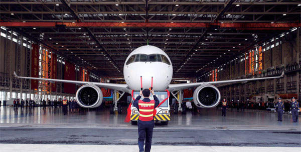 first domestically developed large passenger aircraft, the C919, rolled off the