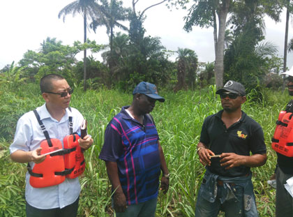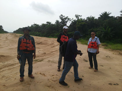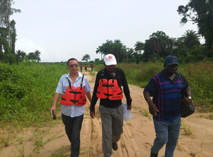 MCC Engineer Director Er. Wang Qianqiu and Mr. Joshua Li, went to Bayelsa State to Inspect the sites of our Ekeremor-Ndoro-Agge Road Project on 5, Apr., 2016.