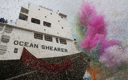 The Livestock Carrier Ocean Shearer at Its Unveiling Ceremony in Dalian, China