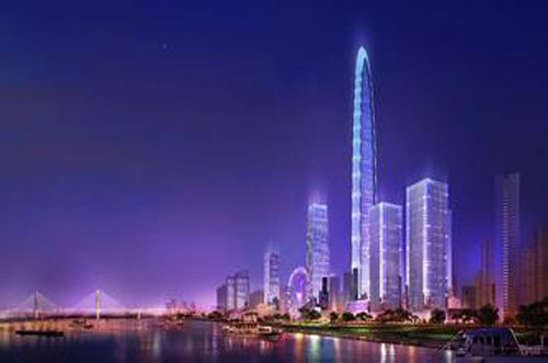 Wuhan Greenland Centeris a 636-metre-tall (2,087 ft) 125-storey skyscraper currently under construction in Wuhan,China.In June 2011, Adrian Smith + Gordon Gill Architects in conjunction with Thornton Tomasetti Engineers won the design competition to build the tower for Greenland Group. The design has many energy saving features. The building's height was increased to 636 m, and is expected to become the tallest building in China,surpassing Shanghai Tower.The expected completion date is 2018.