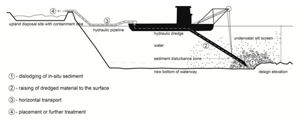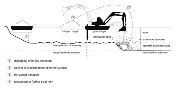 DREDGING IS AN EXCAVATION ACTIVITY OR OPERATION USUALLY CARRIED OUT AT LEAST PARTLY UNDERWATER, IN SHALLOW SEAS OR FRESH WATER AREAS WITH THE PURPOSE OF GATHERING UP BOTTOM  SEMIMENTS AND DISPOSING OF THEM AT A DIFFERENT LOCATION.