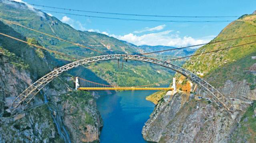 A steel-tube arch bridge in Yunnan province was successfully closed on Nov 15, 2016. The bridge, which sits 270 meters above the Lancang River, is part of the Dali–Ruili Railway in Southwest China's Yunnan Province. The main body of the bridge has a span of 342 meters, and the entire length of its bridge floor is 528.1 meters, making it one of the longest arch bridges China has ever built. And it is also the world's first bridge which was constructed using the "secondary vertical turn" construction method.