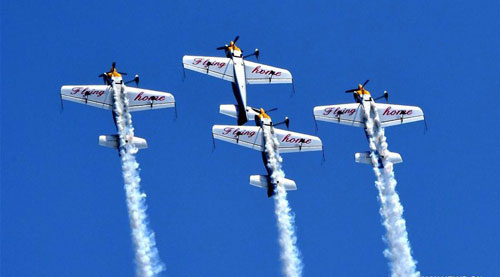 Aerobatic aircrafts fly during a performance at the Airshow Zhengzhou 2017 in Zhengzhou, capital of central China's Henan Province, April 27, 2017. The 5-day air show kicked off in Zhengzhou on Thursday, aiming to build a general aviation gathering center for business and communications.