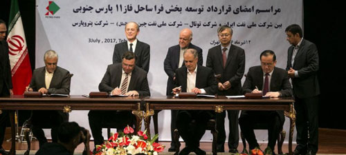 Iran and a consortium of Chinese and French energy giants signed a multi-billion-dollar deal here on Monday to develop a major Iranian gas field in the Persian Gulf.