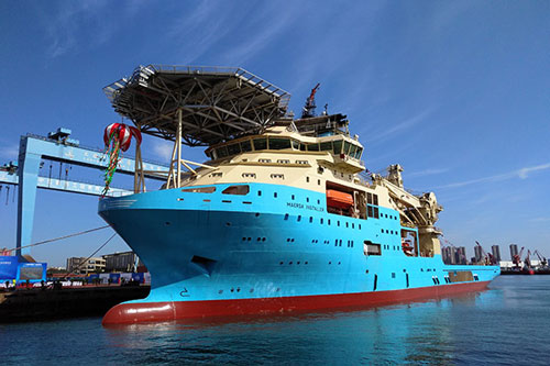 A China's firm, which is building four of the world's leading subsea support vessels for Maersk Supply Service, delivered the first of those four, the Maersk Installer, in Dalian on Oct. 18 .