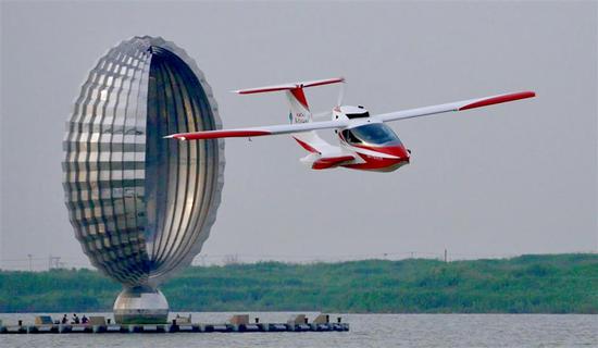 on Tuesday on Shanghai's Dishui Lake, and its designer said mass production and