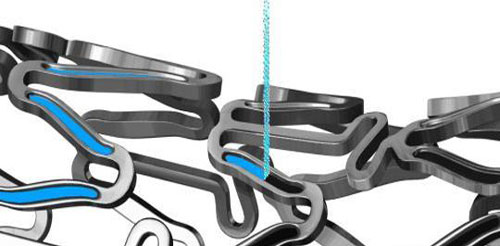 in tiny grooves engraved by lasers on the surface. The design effectively