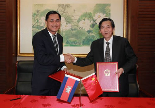 Vice Minister Chen Xiaohua and Mam Am Not, the visiting State Secretary of Ministry of Agriculture, Forestry and Fisheries of the Kingdom of Cambodia co-chaired the China-Cambodia Agricultural Cooperation Working Group Meeting in Beijing on June 18, 2015.