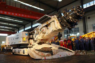 The driving machine weights 60 tons, the maximum cutting hardness is 100 MPa, close to the granite hardness, maximum cutting height is 5.2 meters, the maximum cutting width is 7.3 meters, the design driving capacity is 430 cubic meters per hour, cutting section is 36 square meters. It will bring the revolution of the technology of the driving machine, and fill the gaps in the field of intelligent hard rock tunneling machine.