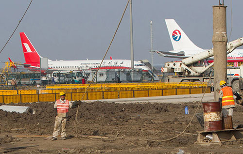 Workers Are Busy with the Expansion Project of Shanghai Pudong International Airport on Dec. 29, 2015.